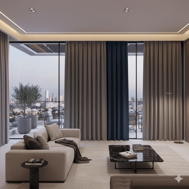 Diseño arquitectónico con una caída impecable que redefine la elegancia de tus interiores. La solución favorita de interioristas en Querétaro para un control de luz sofisticado.